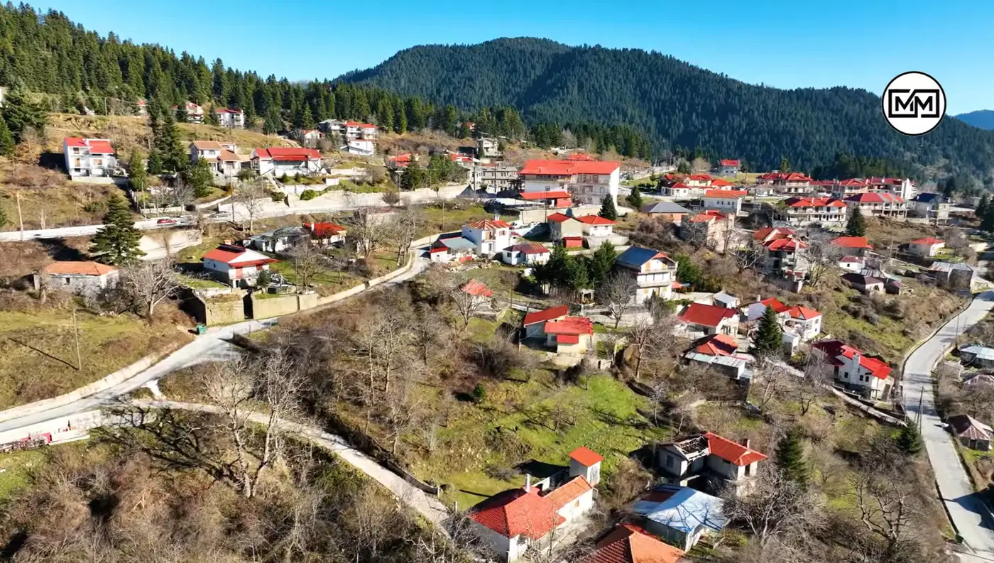 Μέσα από τον φακό του Michael Miller, ταξιδεύουμε πάνω από τις χιονισμένες στέγες και τα ελατοδάση της περιοχής, απολαμβάνοντας την άγρια ομορφιά της Πίνδου.
